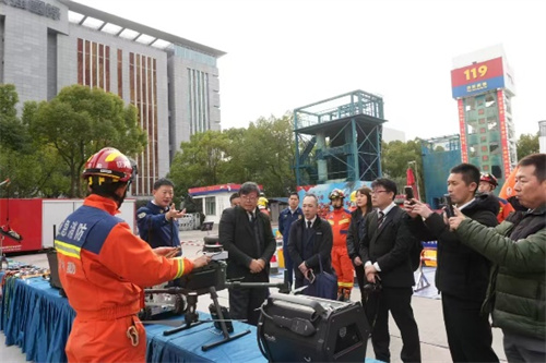 在蘇州,訪(fǎng)華團參觀(guān)了蘇州市消防救援支隊特勤大隊裝備設施并且觀(guān)摩了破拆、高空救援等實(shí)戰化演練,對中國消防精良的裝備及消防員精湛的業(yè)務(wù)技能和頑強的戰斗作風(fēng)給予了高度評價(jià)。