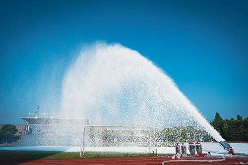 水球,從上向下全角度(環(huán)形)噴射,可以起到濕化保護,防止火勢蔓延。針對古建筑火災,可以有效減小高壓直流水對木質(zhì)結構的沖擊力,保護古建筑結構穩定。