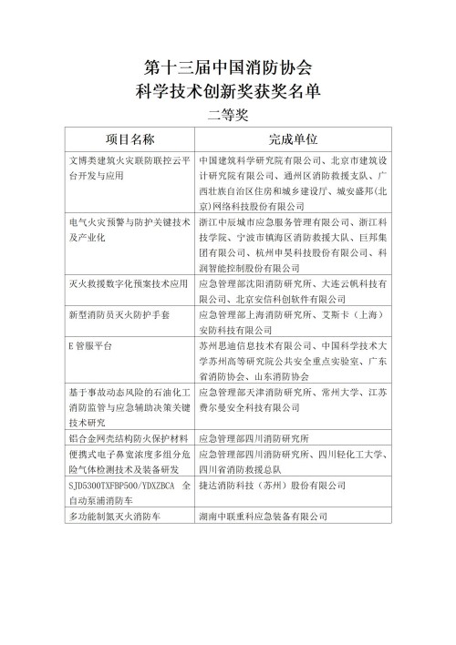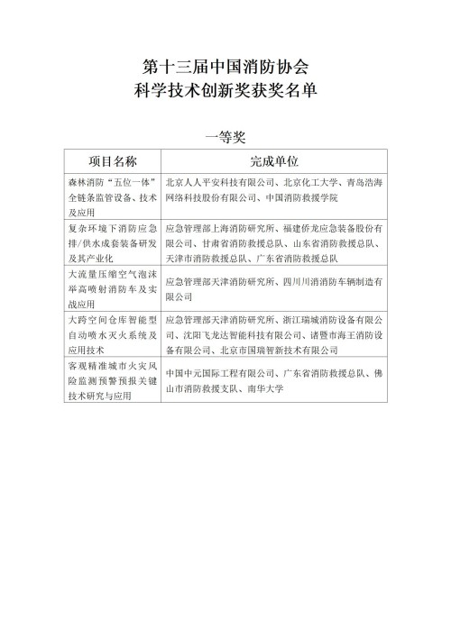 第十三屆中國消防協(xié)會(huì )科技獎揭曉