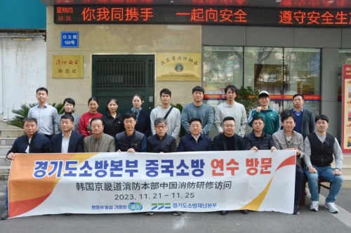 11月23日上午,韓國京畿道消防災難本部一山消防署消防警金玘泰帶領(lǐng)代表團來(lái)江蘇省消防協(xié)會(huì )訪(fǎng)問(wèn)交流,省消防協(xié)會(huì )會(huì )長(cháng)蔣正林會(huì )見(jiàn)了金玘泰一行,并與來(lái)賓進(jìn)行友好交流。儀王消防署消防長(cháng)樸永玟、水原南部消防署消防士尹在蓮、金浦消防署消防警李壯雨、金浦消防署消防衞金長(cháng)賢、東豆川消防署消防警樸尙陳、加平消防署消防警趙表冠、消防學(xué)校消防校李弦烈、特殊對應團消防衞郭永敏、消防災難本部消防警李丙植、翻譯南光哲等陪同來(lái)訪(fǎng),省消防協(xié)會(huì )副秘書(shū)長(cháng)劉維治、朱勁松及協(xié)會(huì )辦事機構全體工作人員及信創(chuàng )國際展覽集團副總裁劉文蕾、項目跨境電商項目運營(yíng)總監張光軍等參加座談交流。