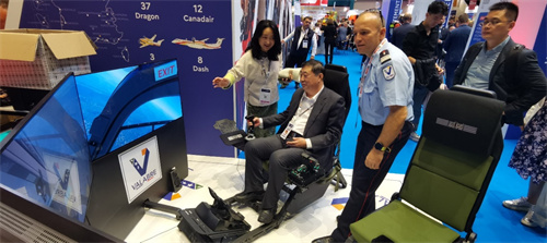 在瓦拉布雷消防培訓學(xué)校展臺,體驗森林火災直升機模擬操作系統