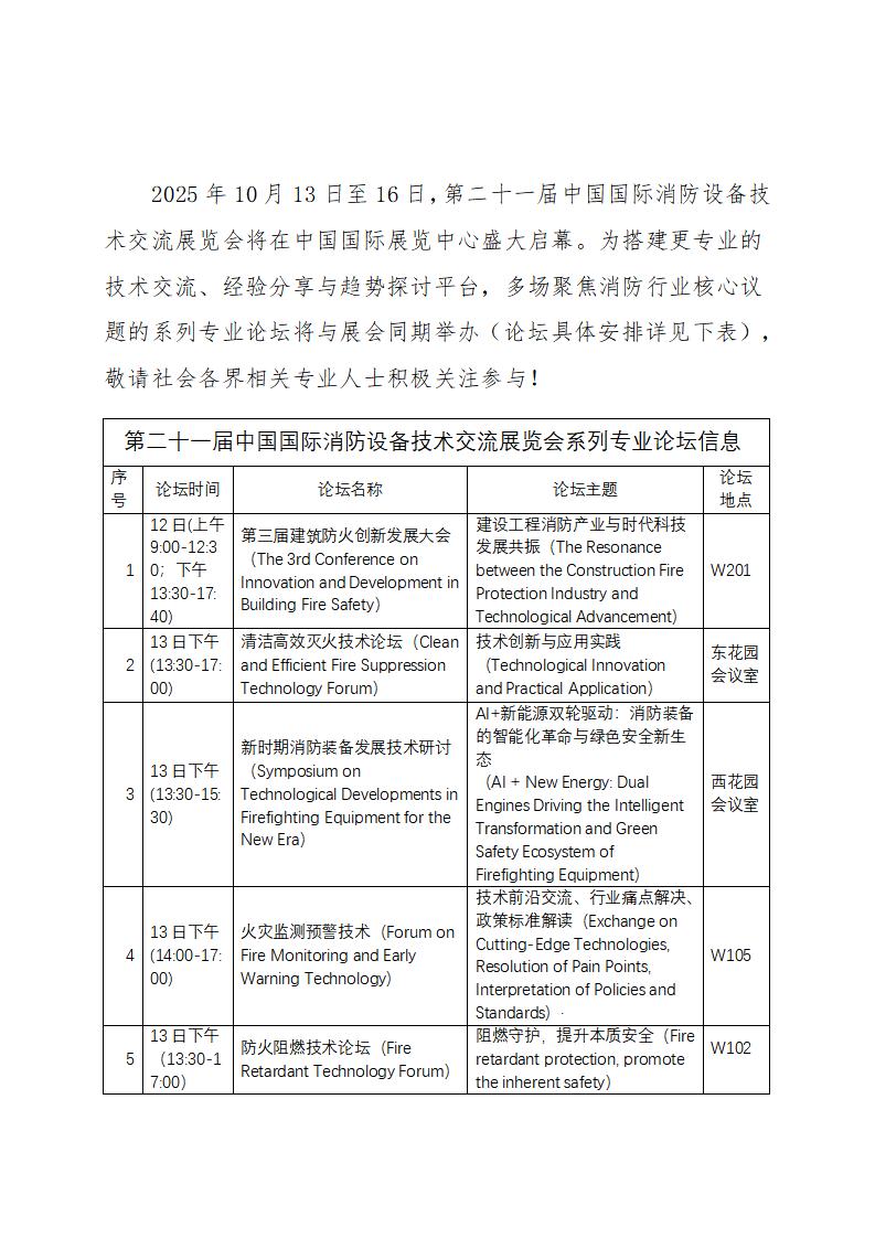 第二十一屆中國國際消防設備技術(shù)交流展覽會(huì )系列專(zhuān)業(yè)論壇預告