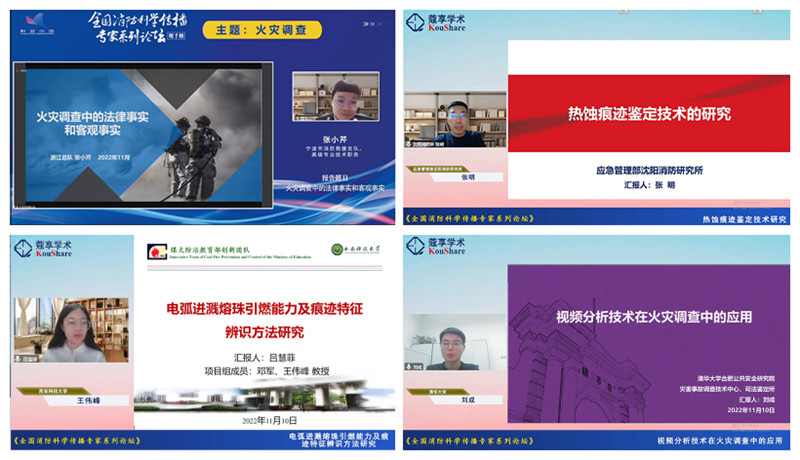 2022年11月10日,中國消防協(xié)會(huì )聯(lián)合中國科學(xué)技術(shù)大學(xué)火災科學(xué)國家重點(diǎn)實(shí)驗室(以下簡(jiǎn)稱(chēng)“火災實(shí)驗室”),以線(xiàn)上方式舉辦了全國消防科學(xué)傳播專(zhuān)家論壇第一期火災調查。中國消防協(xié)會(huì )副會(huì )長(cháng)兼秘書(shū)長(cháng)曹忙根,科技服務(wù)部主任兼宣教部主任王鵬翔,火災實(shí)驗室主任劉乃安、副主任紀杰出席會(huì )議,來(lái)自消防救援隊伍、高等院校、科研院所的12名全國消防科學(xué)傳播專(zhuān)家、火災調查專(zhuān)家通過(guò)視頻連線(xiàn)參加會(huì )議并作報告?;馂膶?shí)驗室副主任紀杰教授、中國人民警察大學(xué)防火工程學(xué)院院長(cháng)李思成教授、武漢理工大學(xué)安全科學(xué)與應急管理學(xué)院院長(cháng)李開(kāi)源教授、應急管理部上海消防研究所火災物證鑒定中心主任張永豐研究員分階段主持會(huì )議,論壇主席為紀杰教授和李開(kāi)源教授。本次論壇在科普中國、光明網(wǎng)、抖音、蔻享學(xué)術(shù)、嗶哩嗶哩等多家媒體平臺在線(xiàn)直播。