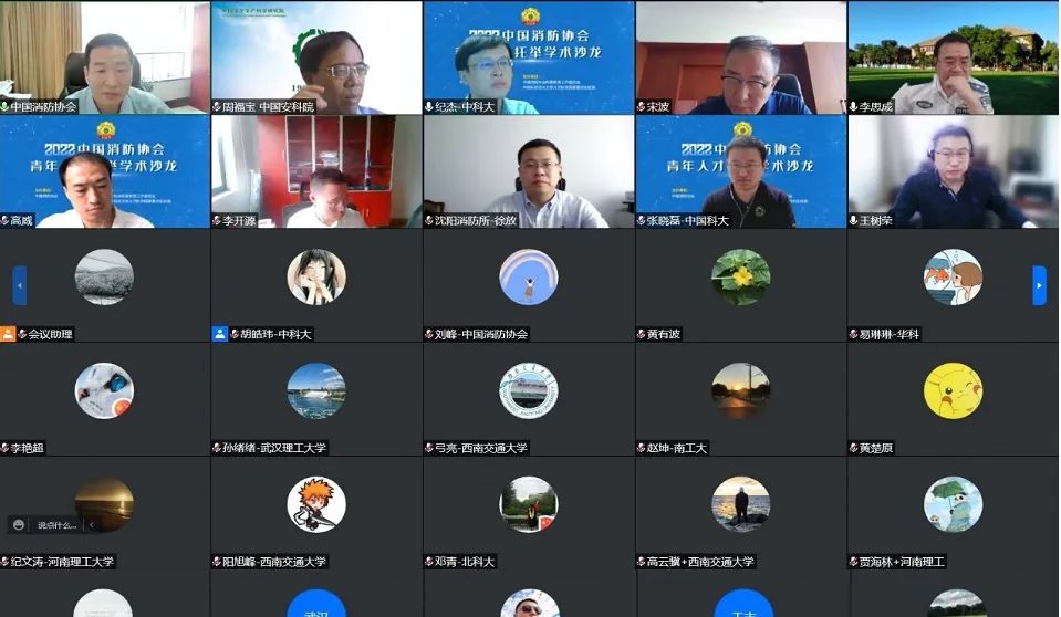 5月27日上午,2022中國消防協(xié)會(huì )青年人才托舉學(xué)術(shù)沙龍成功舉辦。本次學(xué)術(shù)沙龍由我協(xié)會(huì )科普教育工作委員會(huì )和中國科學(xué)技術(shù)大學(xué)火災科學(xué)國家重點(diǎn)實(shí)驗室共同承辦,以線(xiàn)上方式進(jìn)行,來(lái)自高等院校、科研機構的60余名專(zhuān)家、青年科研工作者參加了沙龍活動(dòng),中國科學(xué)技術(shù)大學(xué)紀杰教授、中國安全生產(chǎn)科學(xué)研究院院長(cháng)周福寶教授、中國人民警察大學(xué)防火工程學(xué)院院長(cháng)李思成教授、武漢理工大學(xué)安全科學(xué)與應急管理學(xué)院院長(cháng)李開(kāi)源教授分階段主持。